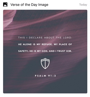 “You who sit down in the High God’s presence, spend the night in Shaddai’s shadow, Say this: “ GOD, you’re my refuge. I trust in you and I’m safe!” That’s right—he rescues you from hidden traps, shields you from deadly hazards. His huge outstretched arms protect you— under them you’re perfectly safe; his arms fend off all harm. Fear nothing—not wild wolves in the night, not flying arrows in the day, Not disease that prowls through the darkness, not disaster that erupts at high noon. Even though others succumb all around, drop like flies right and left, no harm will even graze you. You’ll stand untouched, watch it all from a distance, watch the wicked turn into corpses. Yes, because GOD ’s your refuge, the High God your very own home, Evil can’t get close to you, harm can’t get through the door. He ordered his angels to guard you wherever you go. If you stumble, they’ll catch you; their job is to keep you from falling. You’ll walk unharmed among lions and snakes, and kick young lions and serpents from the path.”