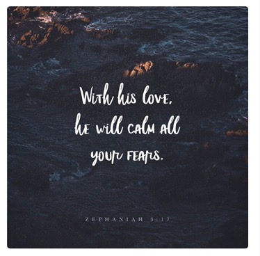 “For the LORD your God is living among you. He is a mighty savior. He will take delight in you with gladness. With his love, he will calm all your fears. He will rejoice over you with joyful songs.””