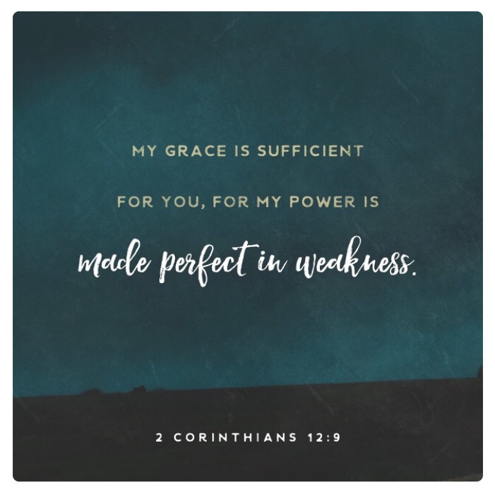 “Each time he said, “My grace is all you need. My power works best in weakness.” So now I am glad to boast about my weaknesses, so that the power of Christ can work through me.”