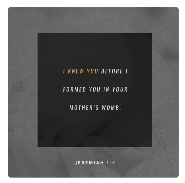 ““Before I shaped you in the womb, I knew all about you. Before you saw the light of day, I had holy plans for you: A prophet to the nations— that’s what I had in mind for you.””