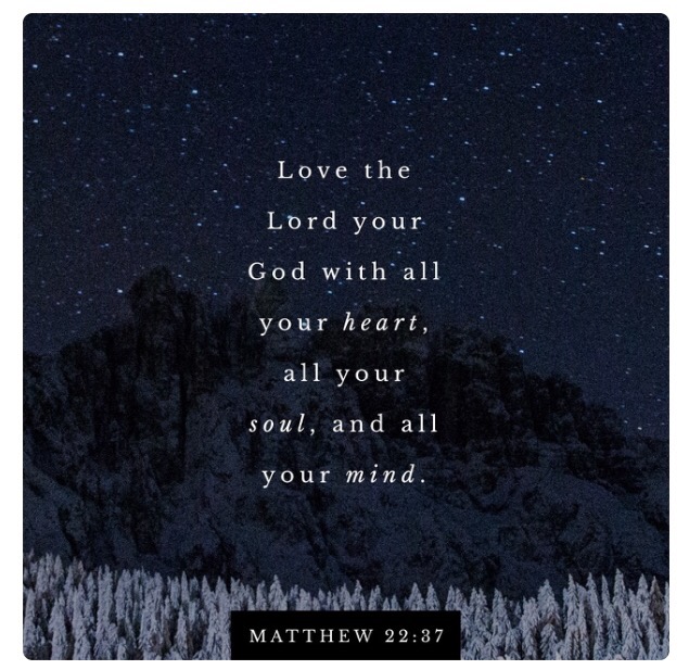 “Jesus said, “‘Love the Lord your God with all your passion and prayer and intelligence.’ This is the most important, the first on any list. But there is a second to set alongside it: ‘Love others as well as you love yourself.’ These two commands are pegs; everything in God’s Law and the Prophets hangs from them.””