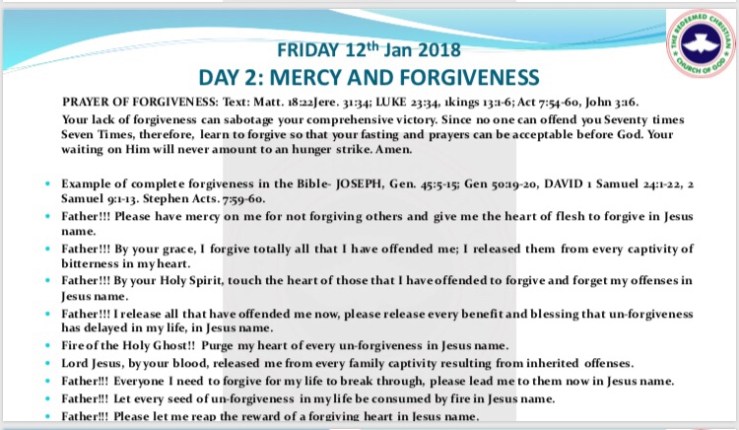 It’s the second day of the RCCG fast. The prayer points for today are in the picture above.