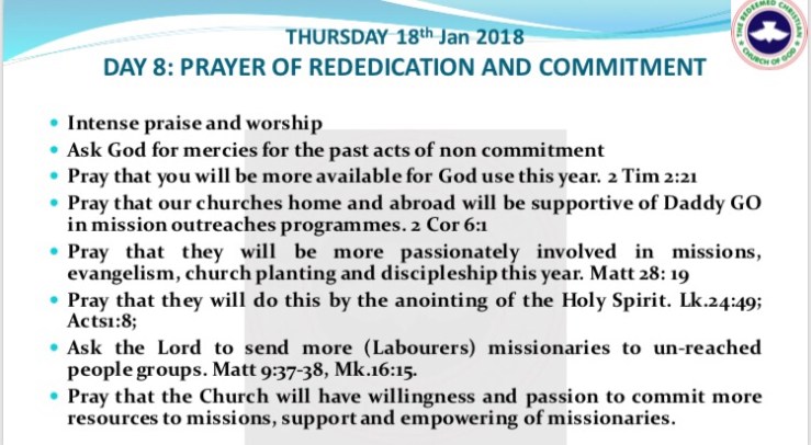 RCCG Fast Day 8 Prayer Points