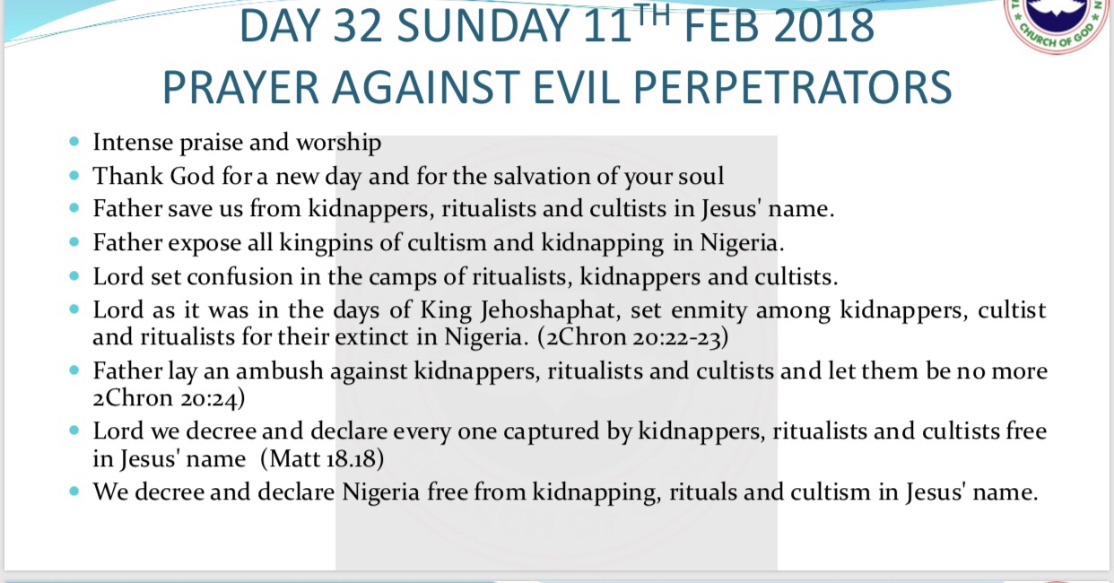 RCCG 2018 Fast – Day 32 Prayer Points