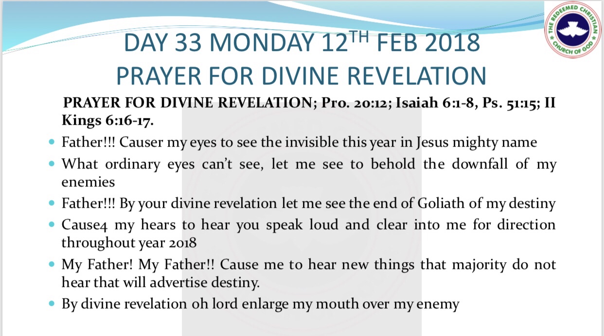 RCCG 2018 Fast – Day 33 Prayer Points