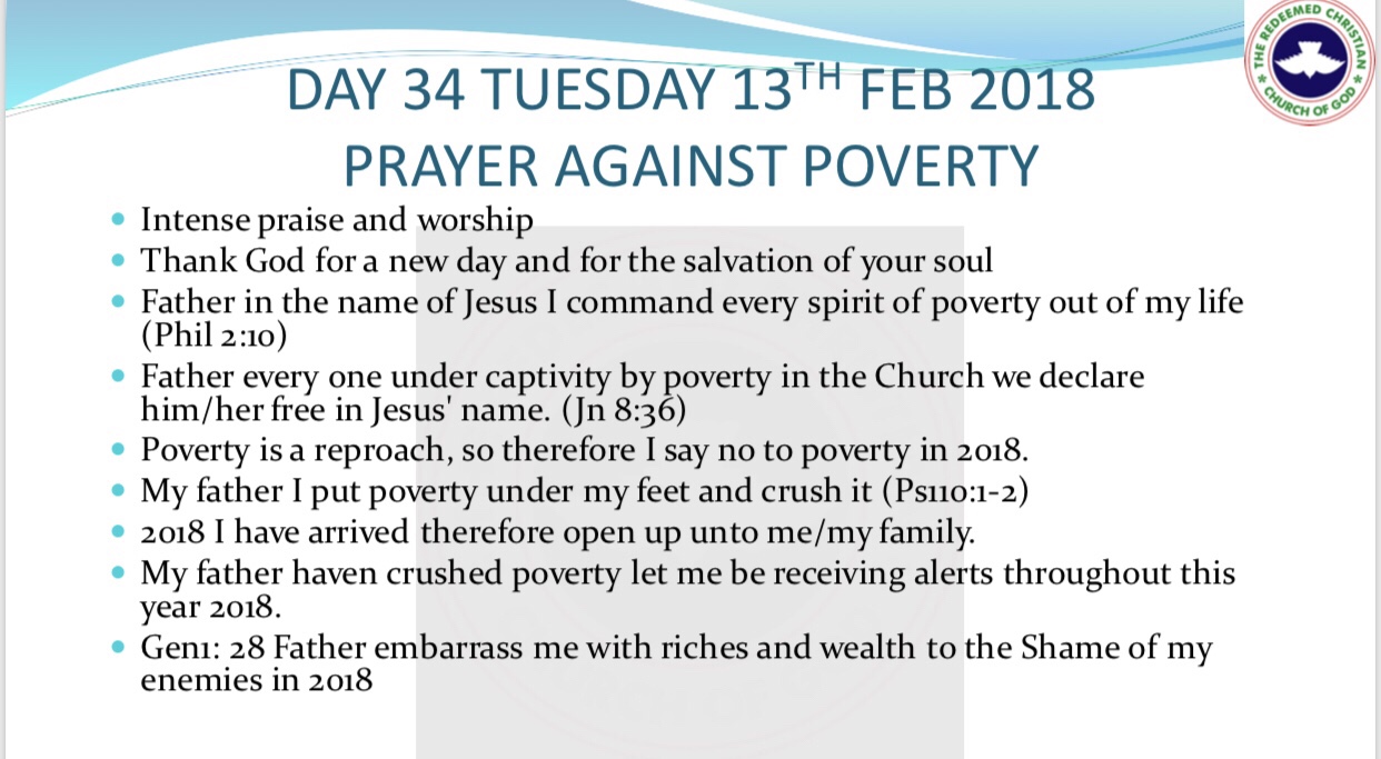 RCCG 2018 Fast – Day 34 Prayer Points