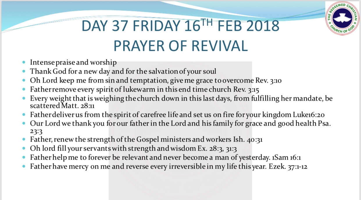 RCCG 2018 Fast – Day 37 Prayer Points