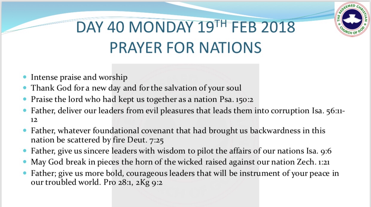 RCCG 2018 Fast – Day 40 Prayer Points
