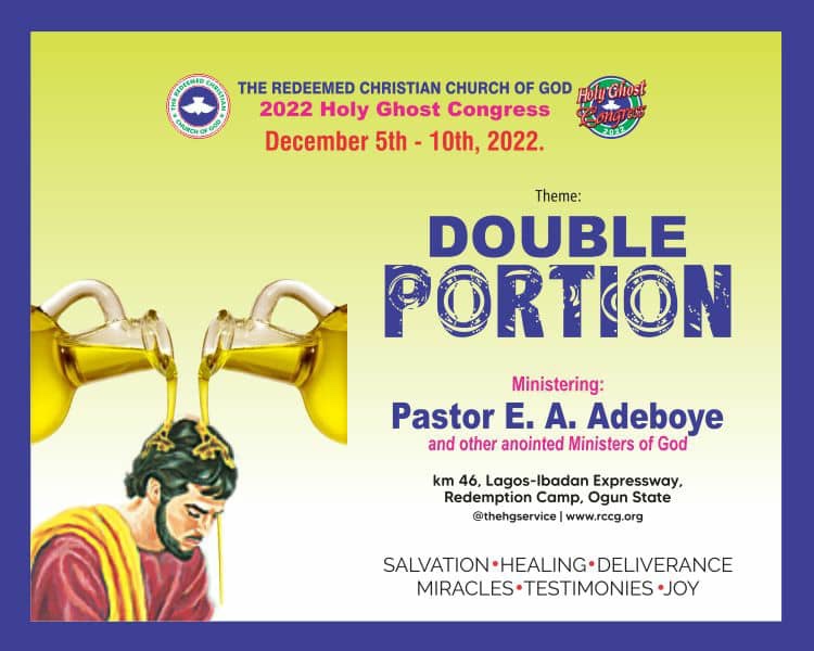 I’m officially inviting you for this year’s Holy Ghost Congress! It’s holding at Redemption City from December 5th – December 10th and is themed “Double Portion”. Please come expectant! If you’re not able to come physically, you can join on YouTube @rccglive.